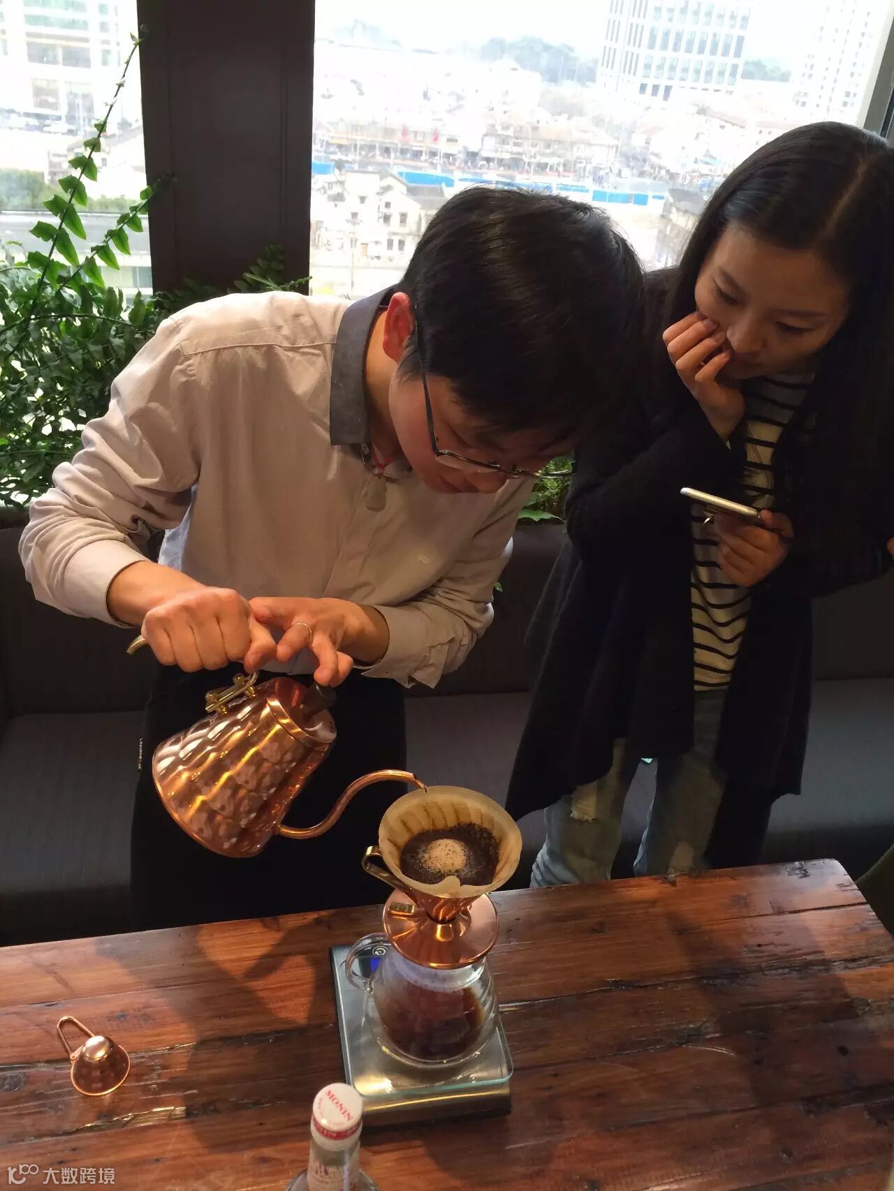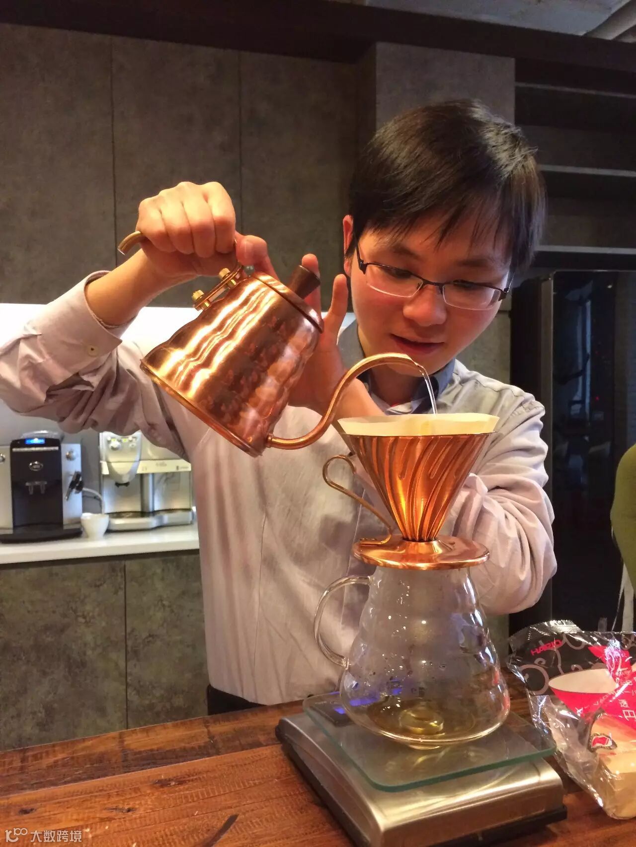 充满文艺格调的手冲咖啡教学演示:水流要像老鼠尾巴一样细才够格哟。