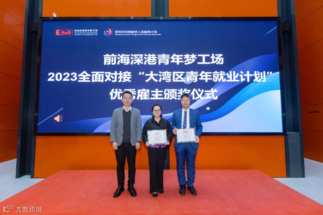 活动的最后,出席本次活动的嘉宾为前海深港青年梦工场2023全面对接“大湾区青年就业计划”优秀雇主进行了颁奖,鼓励更多的在园企业积极招募优秀香港青年。