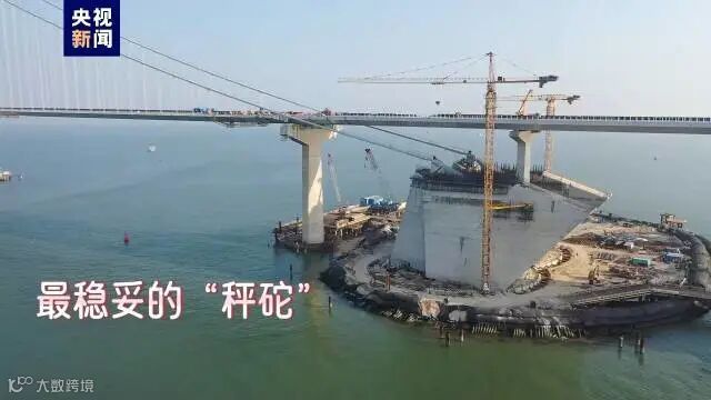 都说“秤砣虽小,可压千斤”。伶仃洋大桥的两个大锚碇真是“秤砣巨大,可压万吨”。说它“大”,每一个秤砣的底座有17个篮球场那么大,说它“重”,一个秤砣就将近100万吨。