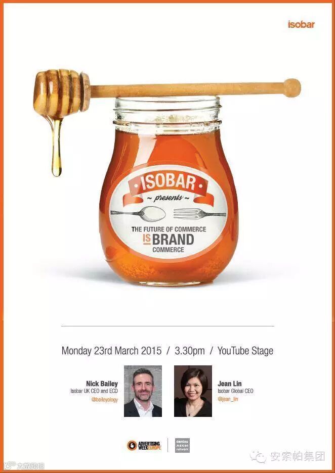 3月23日,安索帕Isobar为欧洲广告周站台,全球首席执行官林友琴(JeanLin),携手英国首席执行官兼执行创意总监Nick Bailey登台演讲“品牌商务的时代”,为揭开数字广告的新纪元传递出了强烈的讯号。这已是欧洲广告周在伦敦举办的第三年,此广告周面向整个欧洲地区,融汇了世界顶尖优秀的营销者们,为业界带来最具启示意义的领先理念。