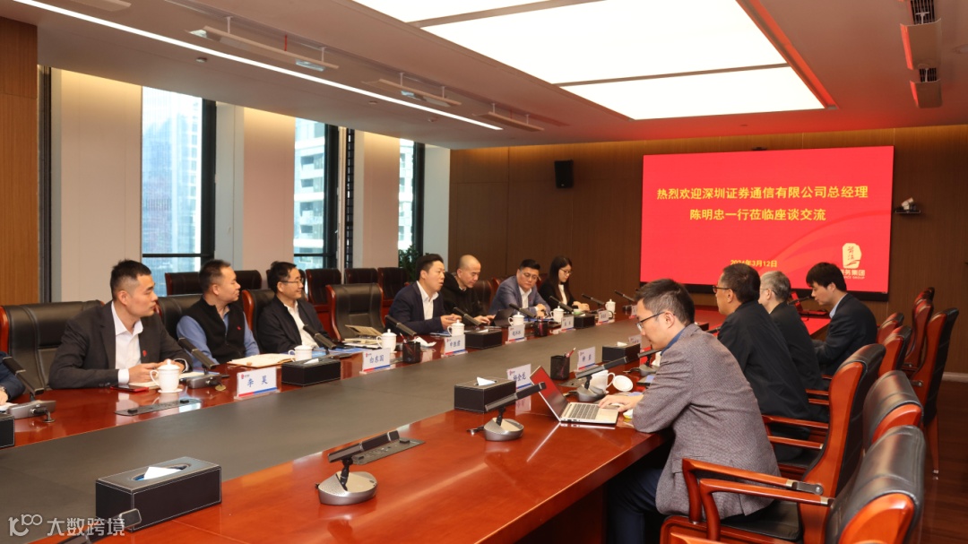 3月12日上午,深圳证券通信有限公司(以下简称深证通)总经理陈明忠一行莅临前海服务集团交流座谈,共同探讨算力建设合作事宜。前海管理局政务数据处二级专员赵冰冰,前海服务集团副总经理耿军,前海深港智算科技公司执行董事、总经理申胜君,前海大数据公司执行董事、总经理秦俊武出席座谈会。