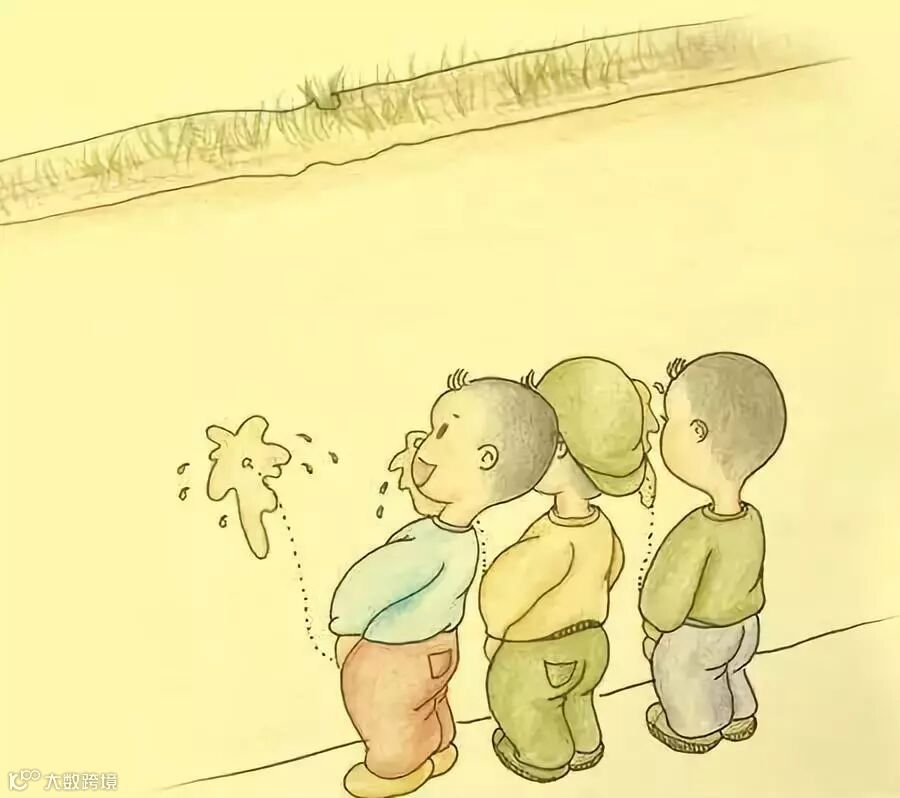 15.男孩子站成一排,看谁尿得更远。
