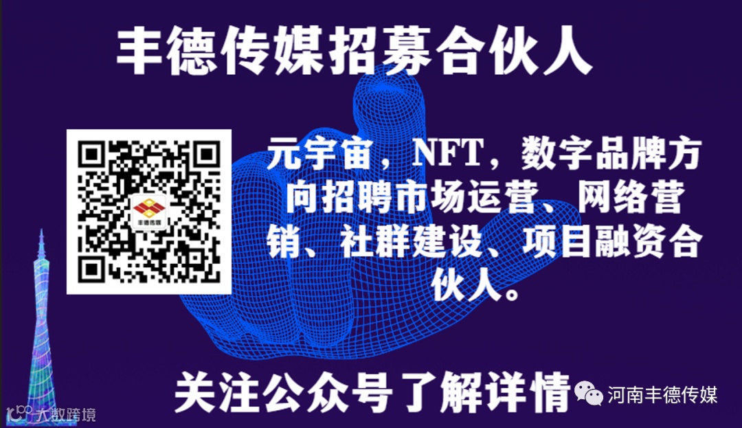 丰德传媒,河南省广告业协会副会长单位,2022年开始深耕元宇宙数字经济。公司在坚守户外广告发展的同时,也在顺应国内迅速崛起的数字藏品平台趋势,面向元宇宙,NFT,数字品牌砥砺前行。