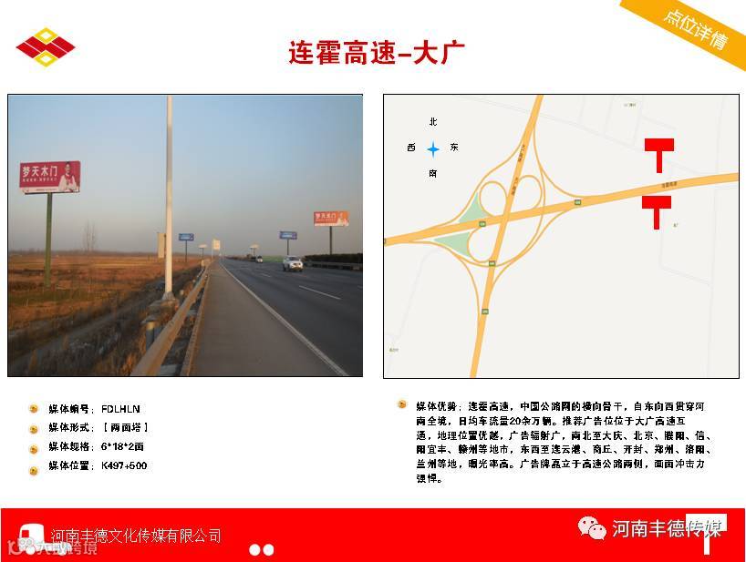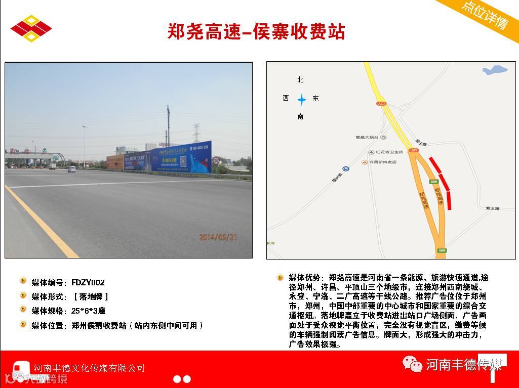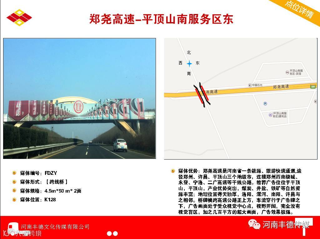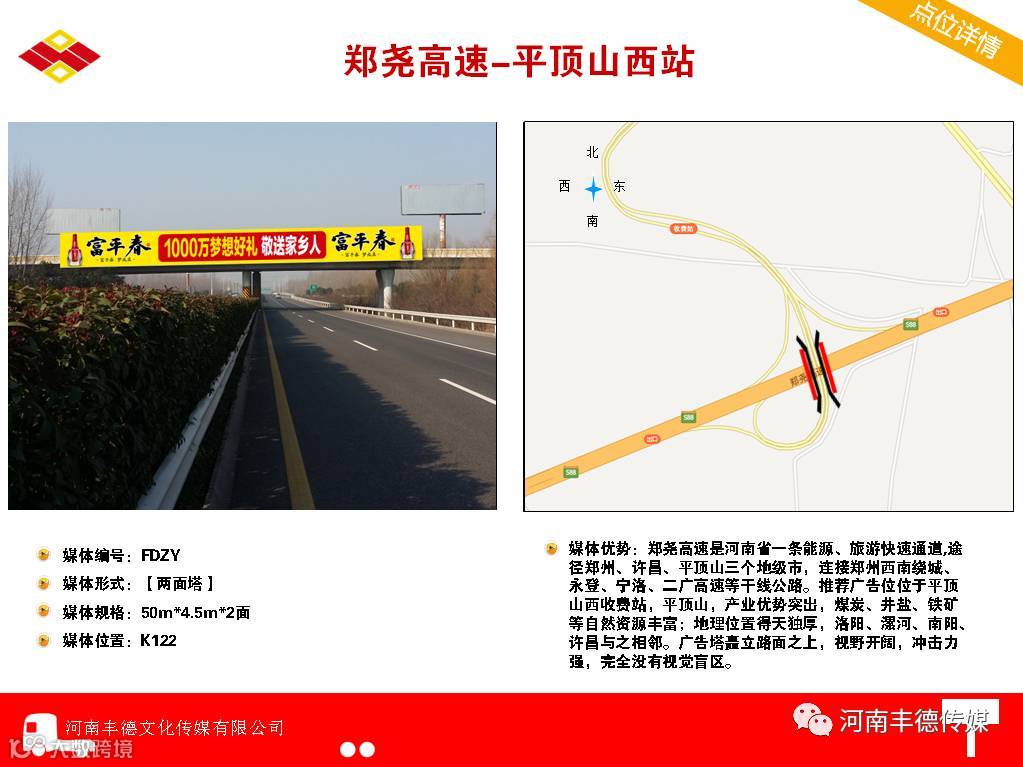 清明正当时,旅游黄金季!现公司连霍高速(国家级高速东西走向大动脉黄金线路)+郑尧高速(河南旅游直通车专线)有空余稀缺广告位,现正值旅游赏花旺季!观光游客众多,不失为作户外推广的黄金旺季!一年之计在于春,春华秋实才能硕果累累!广告位详情路段及位置如下:如有需要敬请预览!机会不容错过!