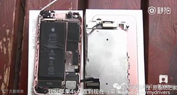 在上述视频中可以看到,这款手机系玫瑰金版iPhone 7。视频中展示了这款手机炸裂后的部件,但未见燃烧的痕迹,电池保存完好。这不同于三星Note 7起火爆炸后,机身被烧焦的情况。