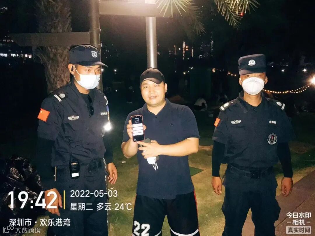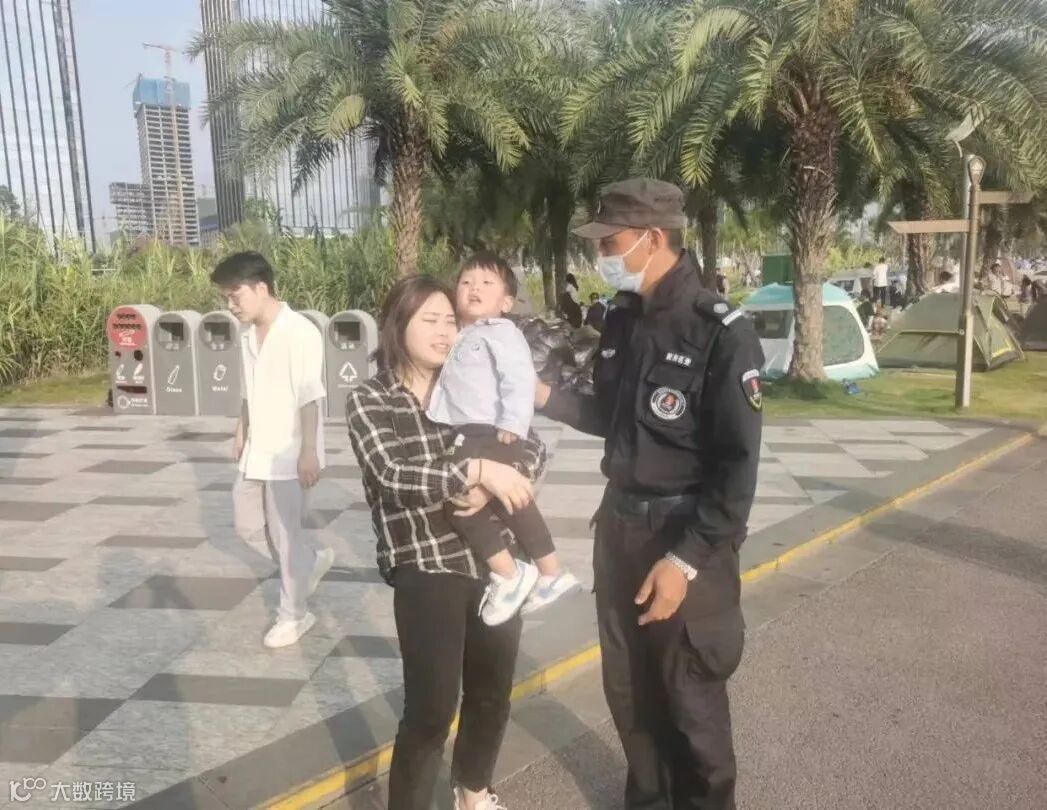 2022年5月3日傍晚,园区巡查人员又发现一名迷路小男孩,经询问得知其与父母走丢,因天黑视线差,在跌跌撞撞中仍未能找到其父母,遂蹲在路边嚎啕大哭。巡查人员对小男孩进行情绪安抚,并调动附近巡查安保人员帮忙寻找,最终找到其母亲,小孩母亲当即准备发红包表示感谢,被巡查人员婉言谢绝。