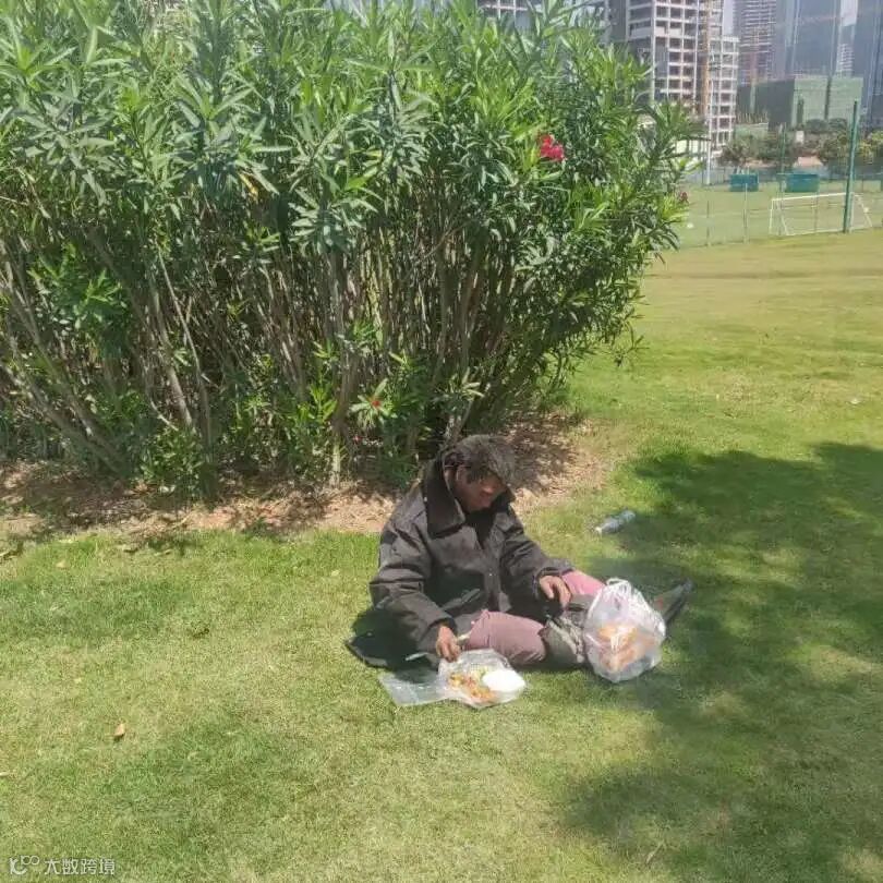 2022年4月30日下午,在前湾二路与临海大道交汇处附近,前海服务集团市政公司园区巡查人员发现一名流浪人员躺在草坪上,经上前查看,发现其神情痛苦,四肢无力,进一步询问得知其无家可归,已连续多天未能吃饭。随后,巡查人员一方面主动联系救助站,一方面为其购买了面包、矿泉水,以解其饥饿。待其体力恢复后,护送其前往附近救助站。