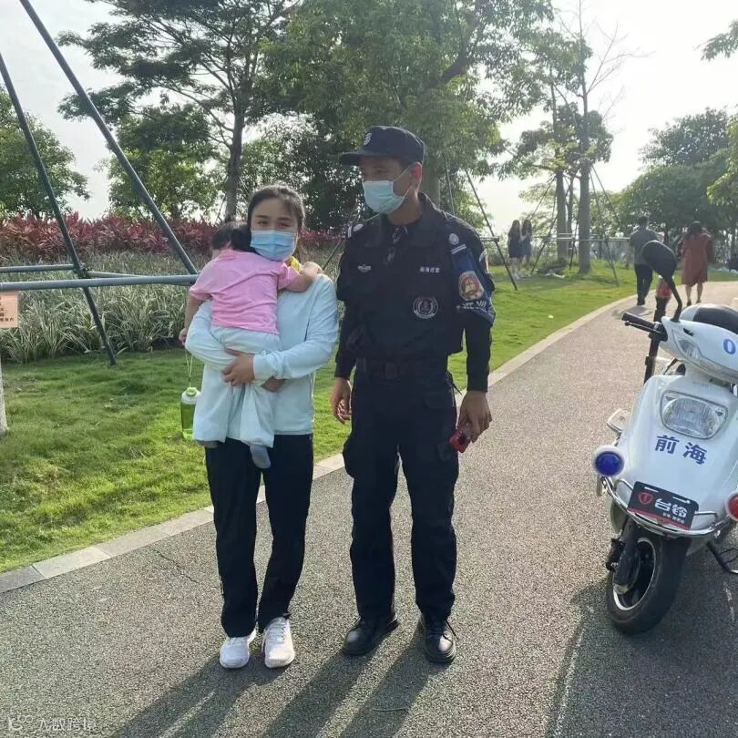 2022年5月3日当天,园区巡查人员在巡查途中,发现一名没有穿鞋的小女孩独自在路边哭泣不已,经上前耐心询问,得知其与妈妈走失。巡查人员立即通过喇叭,大范围在附近呼喊。由于附近空间开阔,且人员密集,短时间内无法找到小女孩父母,巡查人员通过给小女孩唱童歌、讲故事不断安抚、缓解小女孩的紧张情绪。经过半个多小时巡查人员的努力,终于在附近公园内找到其父母。小女孩紧紧抱住母亲,好像是久别的重逢。
