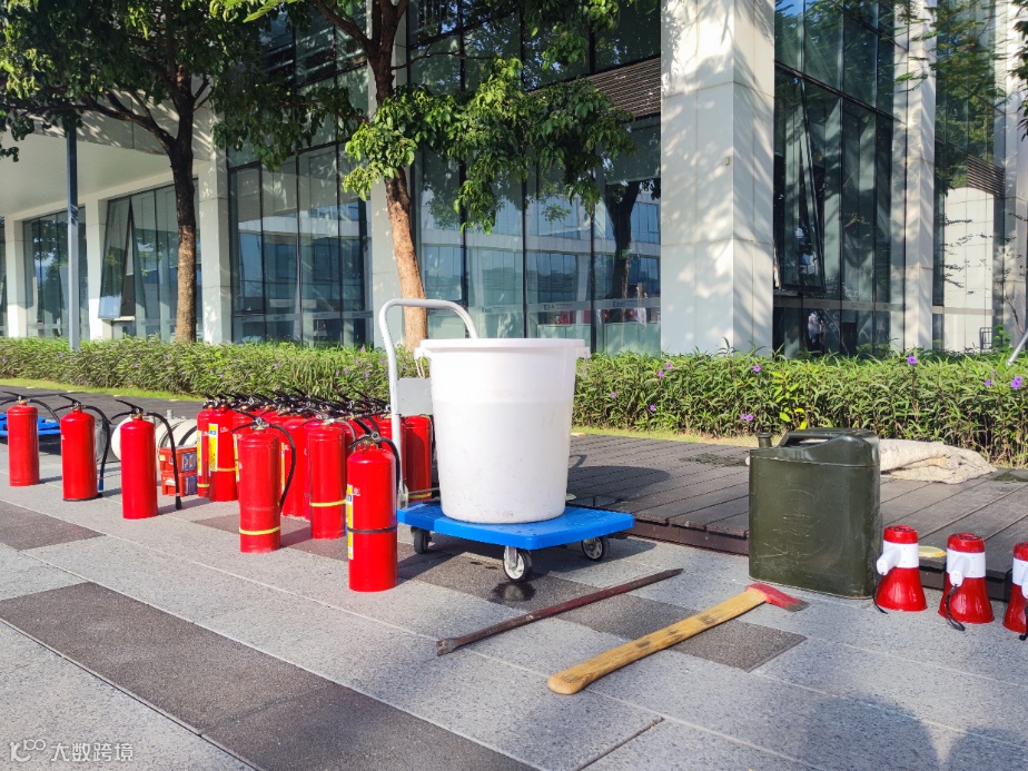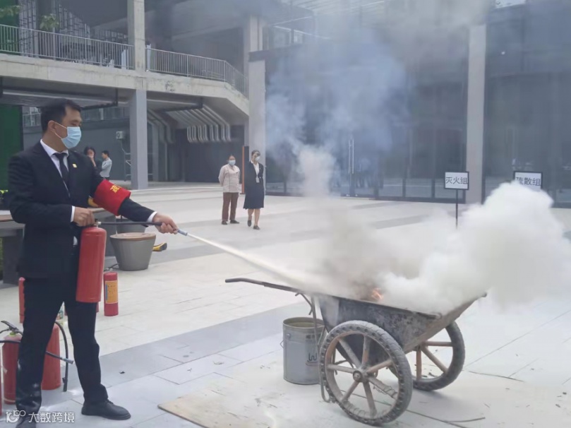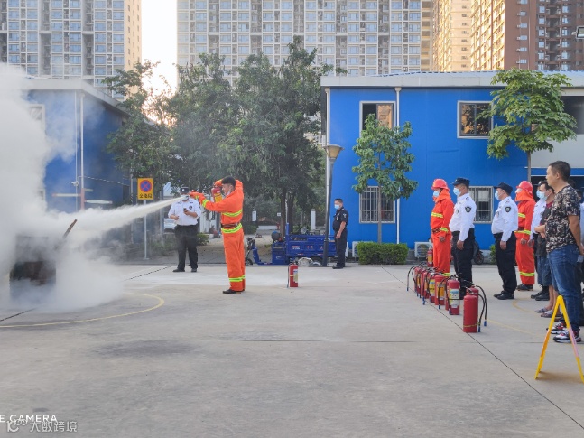 各项目物业人员在演习前向现场人员进行安全知识讲解及实操培训,详细讲解了如何使用灭火器、防毒面罩、灭火毯等日常消防器材,进一步提高大家对消防器械正确使用方法的认知。