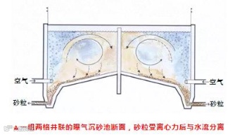 (在曝气沉砂池一侧通入空气,使池内水流产生与主流垂直的横向旋流,砂砾下沉,砂水分离后定期外运)