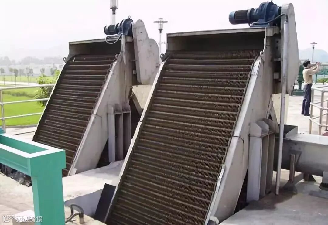 两个单体是用来去除可能堵塞水泵机组及管道阀门的较粗大悬浮物,并保证后续处理设施能正常运行。主要设备为回转式格栅除污机。