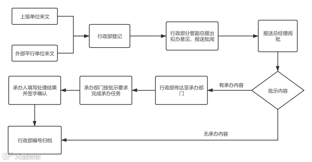 为了方便大家理解,首先看下,鼎青公司的来文处理流程: