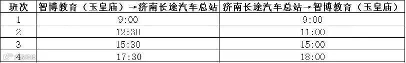 (1)由车站发车,经停智博教育(玉皇庙)时间班次如下: