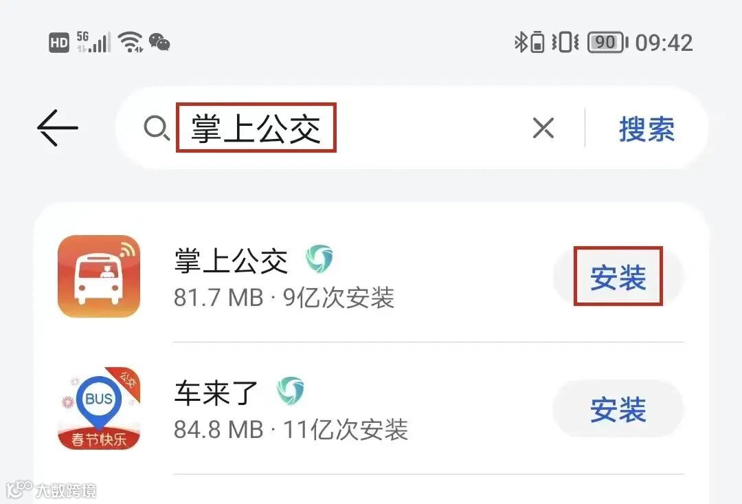 安卓手机在应用市场搜索掌上公交,然后点击安装.