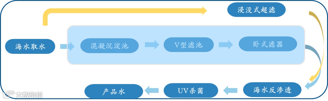 海水淡化作为沿海地区市政、工业、养殖业获取水资源的重要手段,有效保障了国家水安全。但现有膜法海水淡化工艺由于对进水水质要求高,因此预处理工艺流程长、能耗大、占地面积大,降低了海水淡化的投资经济性和适用性。其中某大型海水养殖项目因土地面积问题,1.2万吨/天的用水缺口仅留有900㎡土地,相较传统膜法海水淡化工艺少了约80%土地面积。