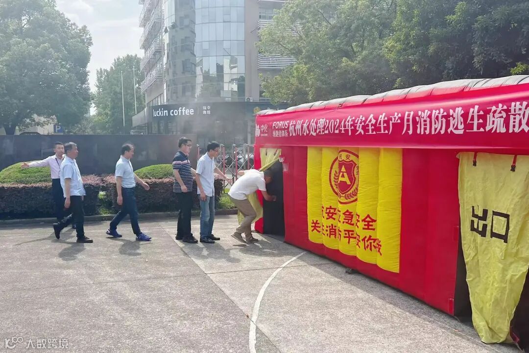 培训后进行了逃生疏散演练,现场设置了充气帐篷模拟火灾现场的情况,点燃了烟饼使模拟现场更加贴近现实情形,员工们5人一组进入帐篷,真实的感受火灾现场的“伸手不见五指”,最终所有员工利用课堂学到的逃生知识顺利走出帐篷。