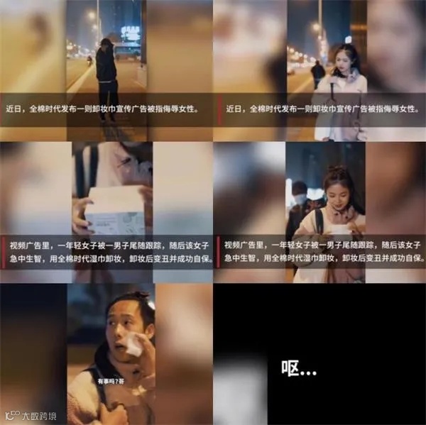 然而,不知道是不是因为这一年发展得过于顺利,全棉时代有点飘了。近日,全棉时代上架了一则卸妆湿巾的短视频广告。视频的大概内容是:一位女性遭到一名男子尾随 ,女子用全棉时代湿巾卸妆,“变丑后”吓跑了尾随男子。