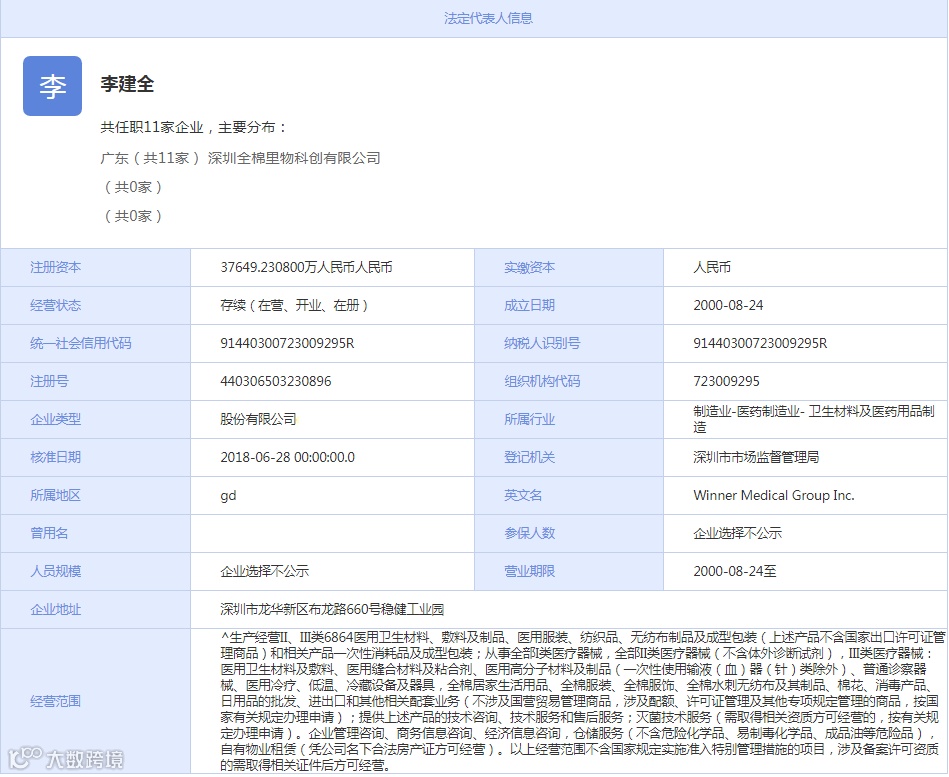 据企盾宝资料显示,Winner稳健作为医疗品牌,为医疗单位提供全球领先的伤口护理和感染防护解决方案,并拓展至家庭护理领域,是中国医用敷料产品主要出口商,每年向全球各地提供大量一次性医疗用品;截至目前,稳健产品已进入八百多家医院和近两万家药店,是中国医用敷料行业标杆企业。