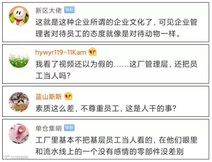 一个月发给工人多少工资固然重要,但这绝不是衡量一个企业是否成功的唯一标准,有没有让员工获得心灵的慰藉、内心的充实、有家的归属感,这才决定了这家企业能够走多远,员工们也许为生计所迫,不得不弯腰低头从地上捡起自己残存的尊严,但他们为这种企业卖命吗?尊重员工,其本质往往也是在爱惜自身的羽翼,希望这一类工厂能好好反思一下。