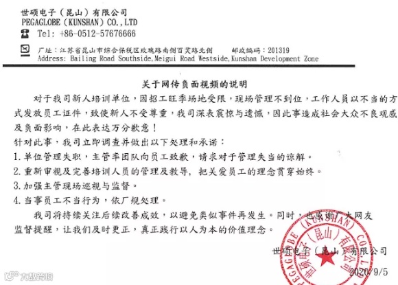 起初,世硕电子称"消息不实",但是在舆论的持续发酵下,9月5日晚,该公司又公开发表道歉声明,称“因场地安排不当才出现该情况”“主管将率团队向员工致歉”等。