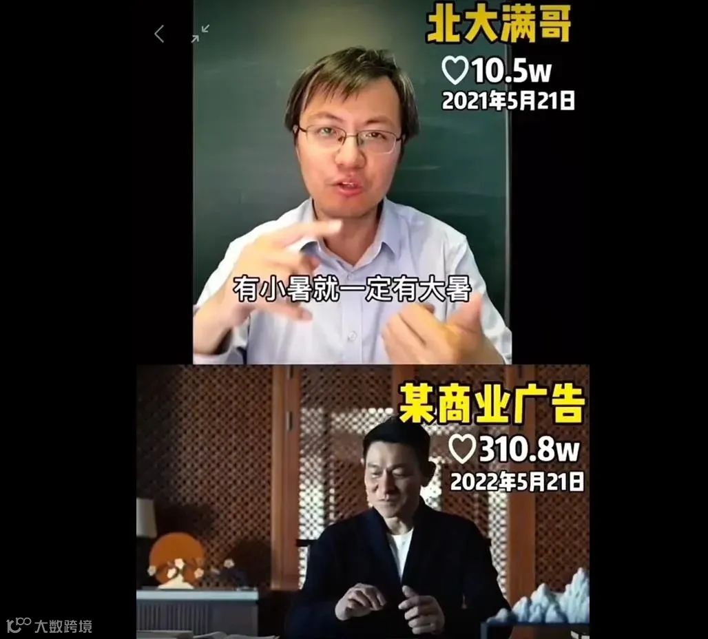 5月21日正值小满节气,由天王刘德华主演的奥迪新广告《今日小满,人生小满》因为富有诗意与哲理的文案被各平台刷屏。就在大家以为这条广告将要拿下今年最佳广告内容片时,抖音博主“北大满哥”当晚就发视频指责该广告内容抄袭他2018年中秋、2020年5月以及2021年“小满”的视频。