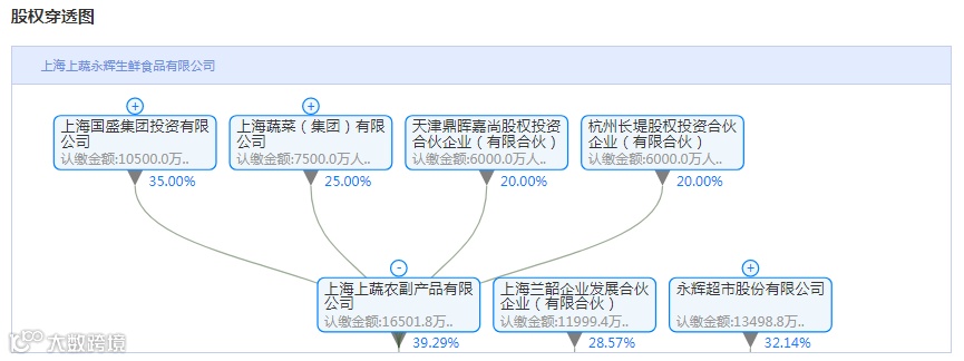 企盾宝资料显示,上海上蔬永辉生鲜食品有限公司于2013年12月20日由上海国盛集团、上海蔬菜集团、永辉超市、鼎晖投资和摩根士丹利共同出资3亿元成立,公司注册资本达4.2亿元。