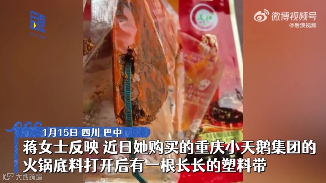 近日,四川巴中一位消费者反映,她购买的重庆小天鹅集团火锅底料,打开后发现底料里竟然有一根长长的塑料条,塑料条呈现出淡蓝色状态,直接牢牢镶嵌在火锅底料里,目测还有很长的一部分没有露出来。都说“民以食为天,食以安为先”,火锅底料里出现了塑料条,显然是一起食品安全事故。所以消费者就拍了视频发布到网上,很快引起了热议。