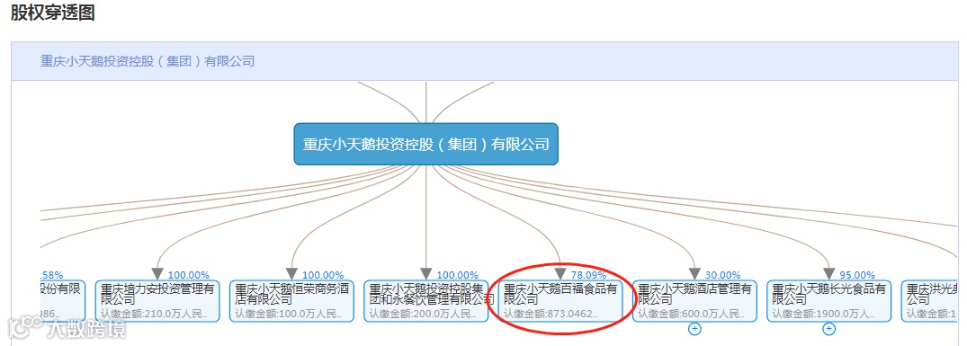 通过企盾宝的股权穿透功能可以看到,生产上述问题火锅底料的应该就是重庆小天鹅百福食品有限公司,重庆小天鹅投资控股(集团)有限公司是该公司的母公司,占股78.09%。