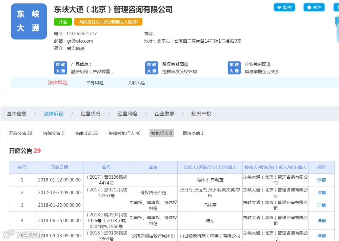 据企盾宝资料显示,北京拜克洛克技术服务有限公司注册资本100万人民币,成立时间为2017年8月。戴威为公司最大股东,持有公司股份70%。除了戴威,拜克洛克技术服务有限公司联合创始人于信和杨品节分别持有股份10%和20%,是北京拜克洛克技术服务有限公司的第三大和第二大股东。2020年开年以来,ofo运营主体东峡大通(北京)管理咨询有限公司已新增9条被执行人信息,累计执行标的约1009万。