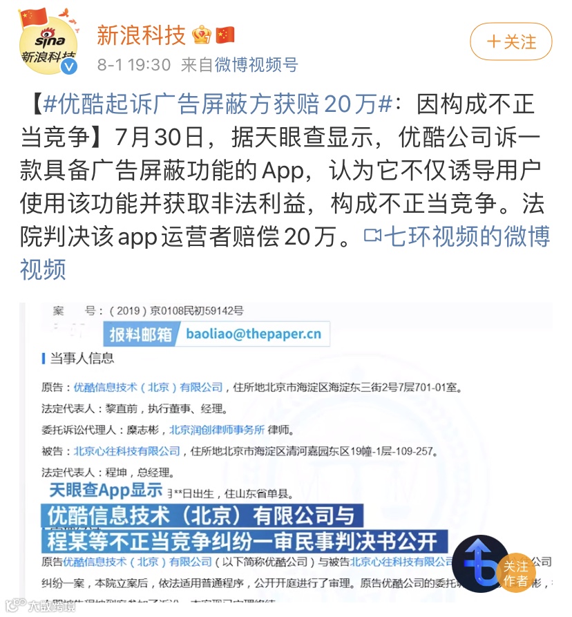 近日,优酷公司起诉一款具备广告屏蔽功能的App,认为它不仅诱导用户使用该功能并获取非法利益,构成不正当竞争。