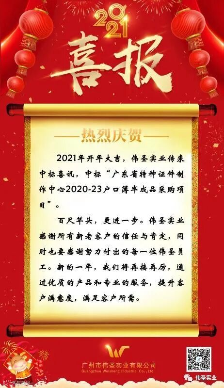 广州市伟圣实业有限公司中标广东省特种证件制作采购项目