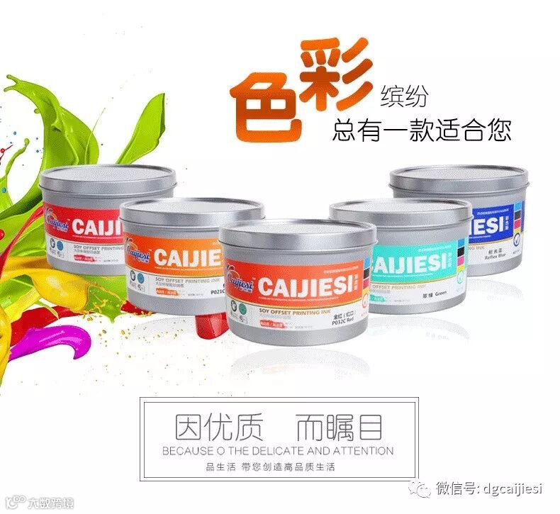 东莞市彩杰斯印刷材料有限公司,多年专注于研发生产平版胶印环保大豆油墨、四色油墨、荧光油墨、金银油墨、耐晒油墨、潘通专色油墨(可按客户要求定制)、UV油墨、代销橡皮布、药水等印刷耗材,用于印刷高档杂志、画册、画报、广告及精美纸制包装盒、彩盒、单张纸等。以创新色彩,卓越品质,服务专业,顾客满意的经营宗旨。