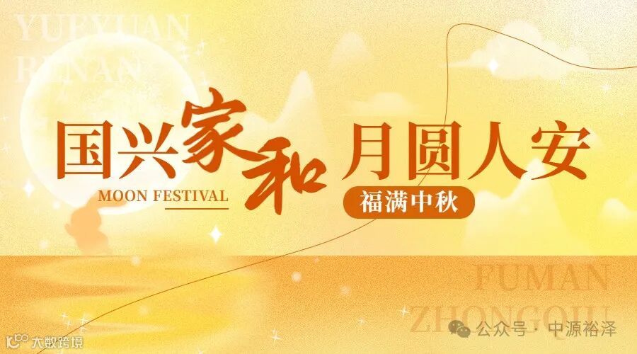 中秋节,不仅是月圆人圆的传统佳节,更是我们回顾过去、展望未来的重要时刻。感谢您一直以来的信任与合作,正是有了您的支持,中源裕泽才能不断前行,在风雨中茁壮成长。