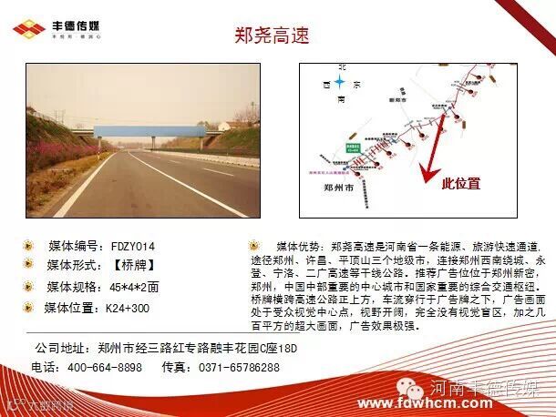 导读: 媒体编号:FDZY014媒体形式:【桥牌】媒体规格:45*4*2面媒体位置K24+300