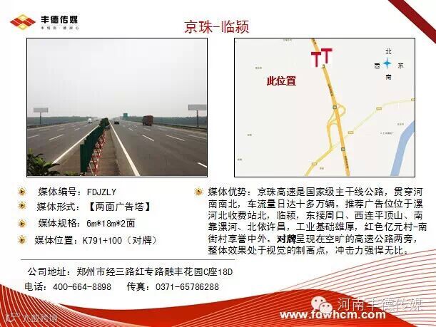 导读: 媒体编号:FDJZLY媒体形式:【两面广告塔】媒体规格:6m*18m*2面媒体位置:K791+100