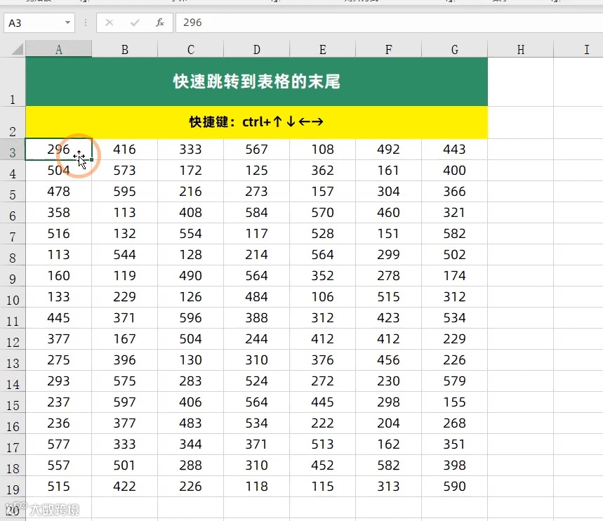 利用这个快捷键配合上下左右四个方向箭头,我们可以快速地跳转到表格的末尾