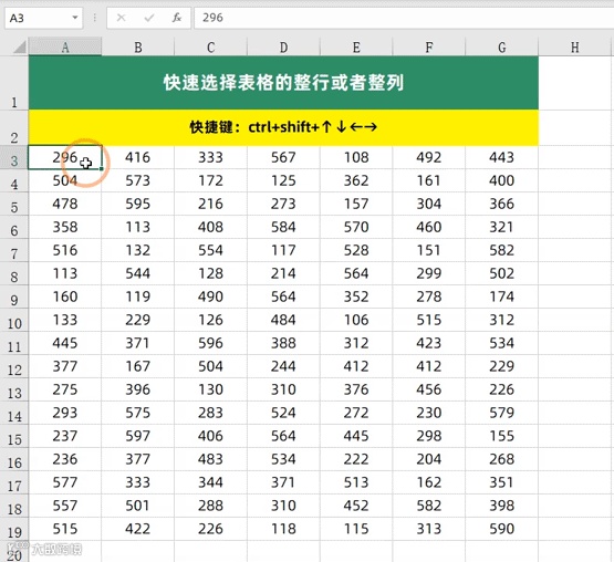 Ctrl+shift+箭头方向(快速选择整行或者整列)