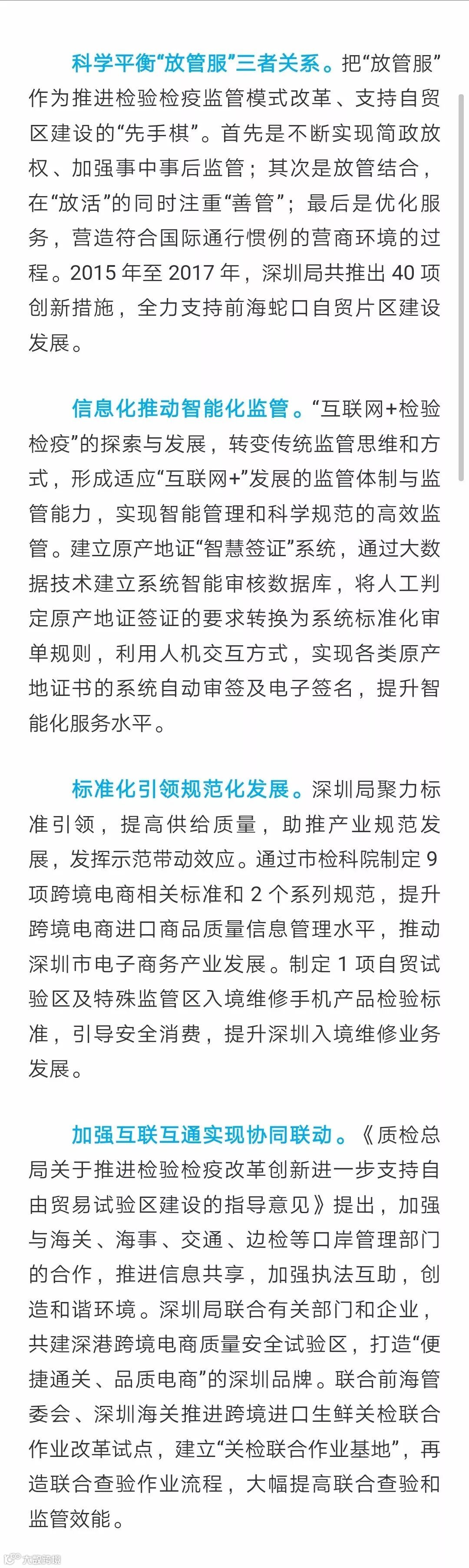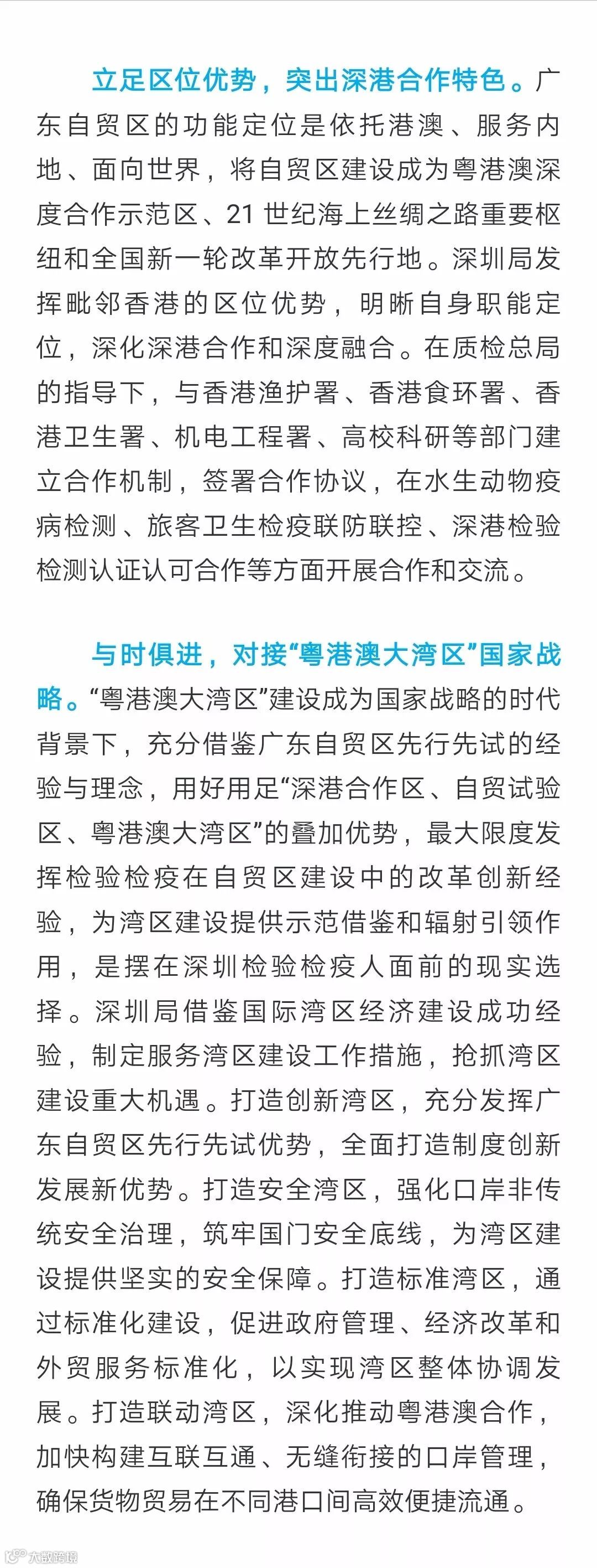 深圳局利用毗邻香港的独特优势,把握住中央给予前海的定位,在自贸区建设中突出深港合作,对接“粤港澳大湾区”建设。