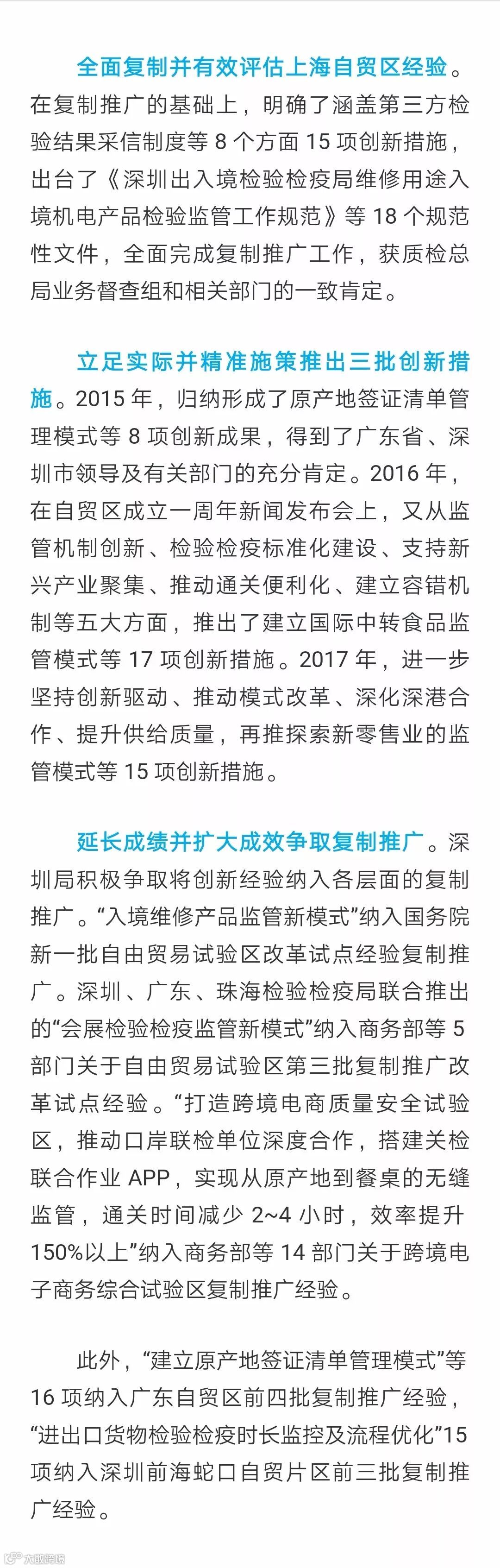 前海蛇口自贸片区成立以来,深圳检验检疫局锐意创新、大胆改革,推出了一系列支持自贸区建设服务措施,取得明显成效,为前海蛇口自贸片区发展注入了新动力。