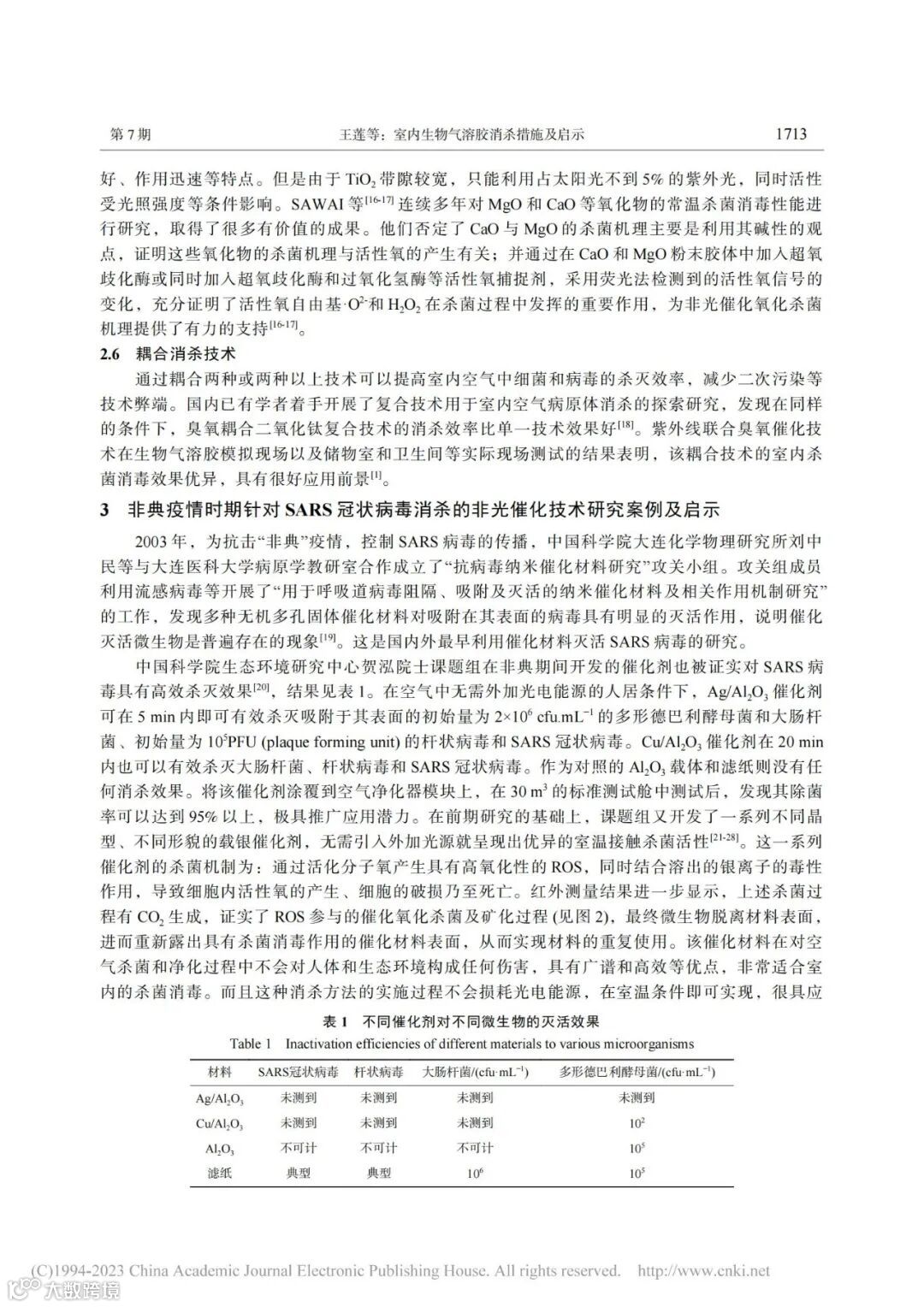 团队在充分认识生物气溶胶来源、危害及其传播规律,了解室内生物气溶胶的防控措施以及主要消杀手段的基础上,通过分析 SARS 冠状病毒的非光催化消杀技术案例,提出了室内非光催化消杀材料与高效滤除、紫外、臭氧等其他技术复合形成室内病原体消杀整体方案建议,为传染疾病的预防起到积极的作用。