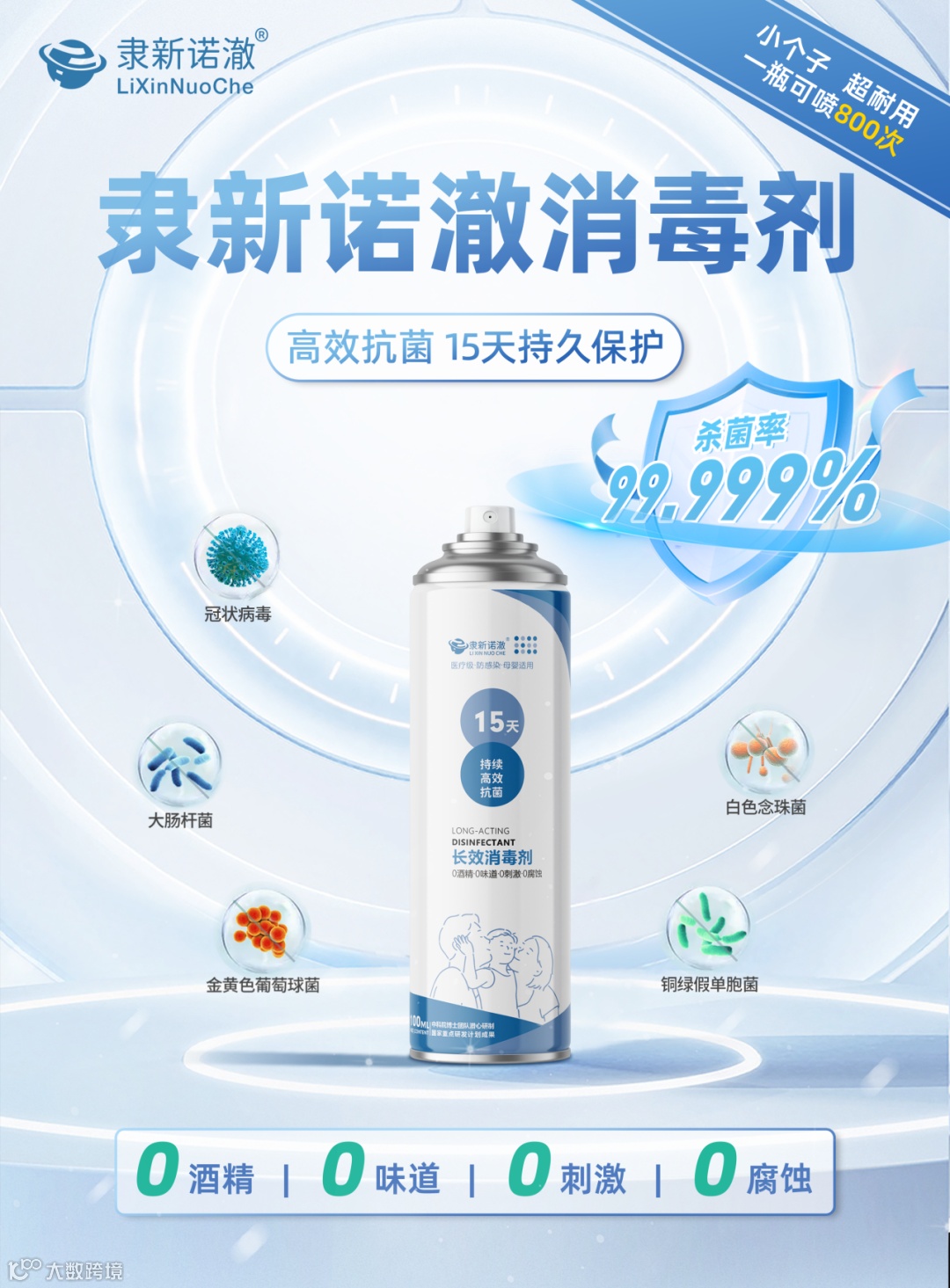单次喷完能够持续15天杀菌,杀菌率高达99.999%