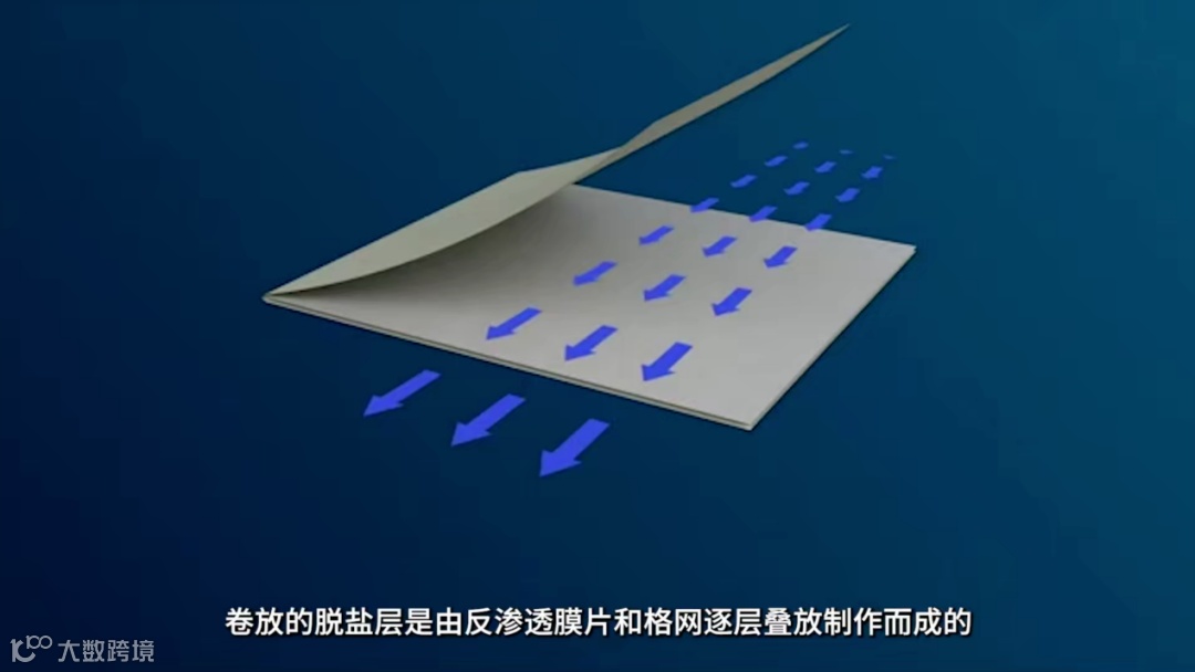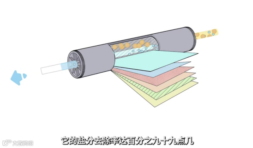 在膜元件中,有一层卷放的脱盐层,这是由反渗透膜片和格网逐层叠放制作而成。在压力的作用下,海水中的水分子得以通过,盐分被“拦”下来,从而获得淡水。通过“膜法”获取的淡水非常干净,盐分去除率高达99%以上。只要用好这个技术,就能有效打破因为缺水而带来的各种限制。