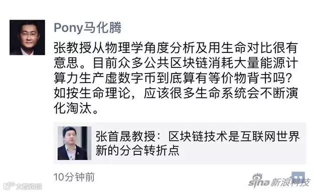 马化腾是在转发语中称“张教授从物理学角度分析及用生命对比(比特币)很有意思。”(新浪科技)