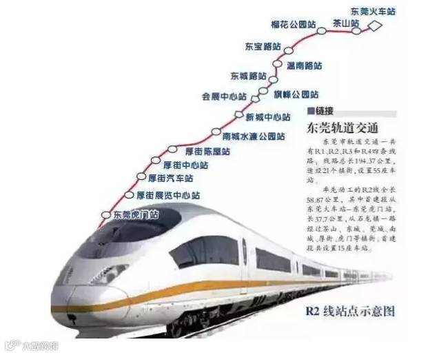 东莞市轨道交通3号线为西南-东部的切线,经过9镇街,全长66.2公里。