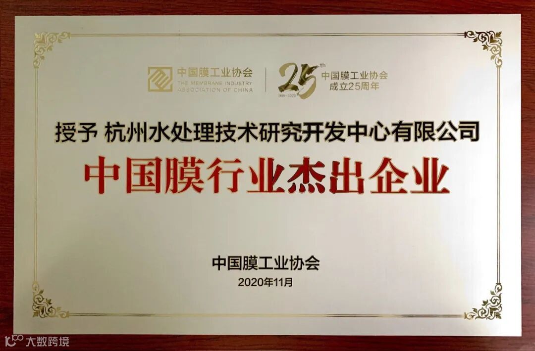 本次大会旨在对二十五年来在膜产业发展、科研开发、经营管理等方面做出突出贡献的优秀人物与企业进行表彰。此次获得中国膜工业协会颁发的“中国膜行业杰出企业”荣誉称号,是对杭州水处理长期以来在膜技术研究开发和应用中所取得成绩的肯定。