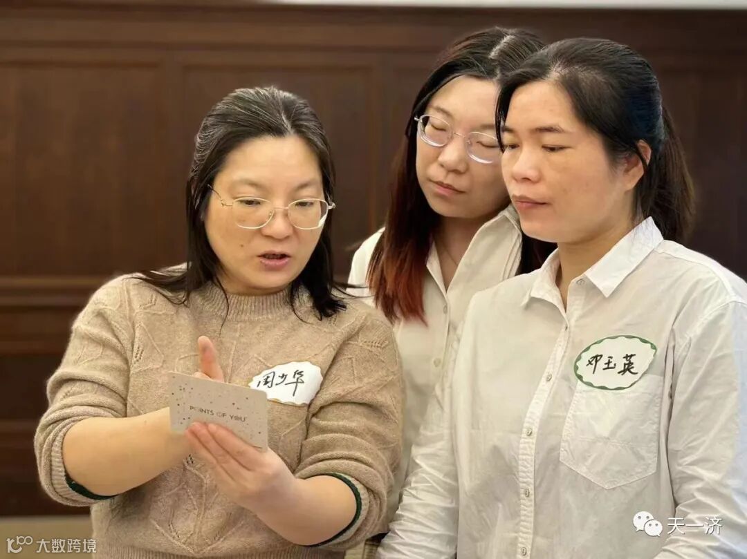 二、授课老师开始了以色列卡牌POINTS OF YOU的看图说话3分钟、和交换卡片3分钟,以及key words的阐明观点的活动环节,先让大家进行互相认识并了解自我,每个人都在活动中展现出了真实的一面,现场活动场景: