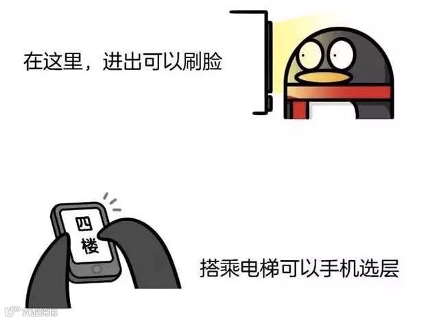 在大厦内部,腾讯应用物联网、人工智能等前沿科技,让滨海大厦成为探索物联网解决方案和人工智能的“超级试验场”。所有设施设备均植入具有腾讯DNA的QQ SDK和微信SDK。每个员工从进入大门开始,就能体验到最新的互联网科技成果。在门口,腾讯自主研发的优图实名核身技术为大厦的人脸识别安保系统提供支持,员工不用刷卡直接“刷脸”即可进入。如果有访客和朋友到来,在大堂等待时,可通过手机与AR、VR设备进行多种互动。