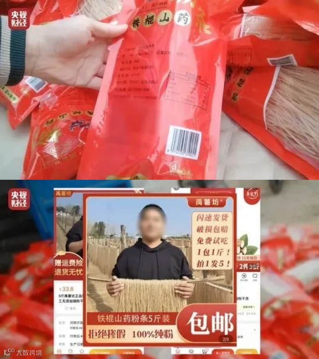禹州市瑞田农副产品有限公司不仅售卖“通货”,还售卖以木薯粉为主的假冒山药粉条,这种所谓的山药粉条,主要通过一些网络购物平台销售,并宣称“拒绝掺假、100%纯粉”,但是其中80%的原料是木薯粉。