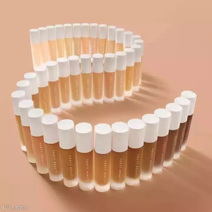 对于爱化妆的妹子来说,粉底液的选择是个大苦恼。今年9月,蕾哈娜发布了拥有40种不同色号的Fenty Beauty美妆品牌,产品覆盖粉底液、修颜棒、高光粉、唇彩等多个品种。
