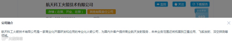 航天科工火箭技术有限公司是一家商业化开展研发和应用的专业化火箭公司,为国内外客户提供商业航天发射服务。